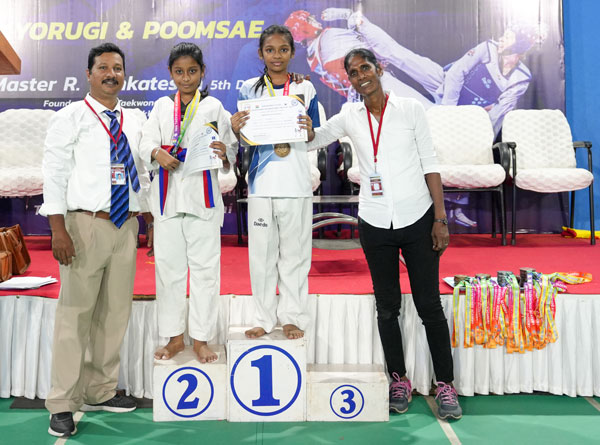 Sarvanthika & Tushika with Master Ramesh Perumal In OMR TKD Championship -29 Aug 2021 -